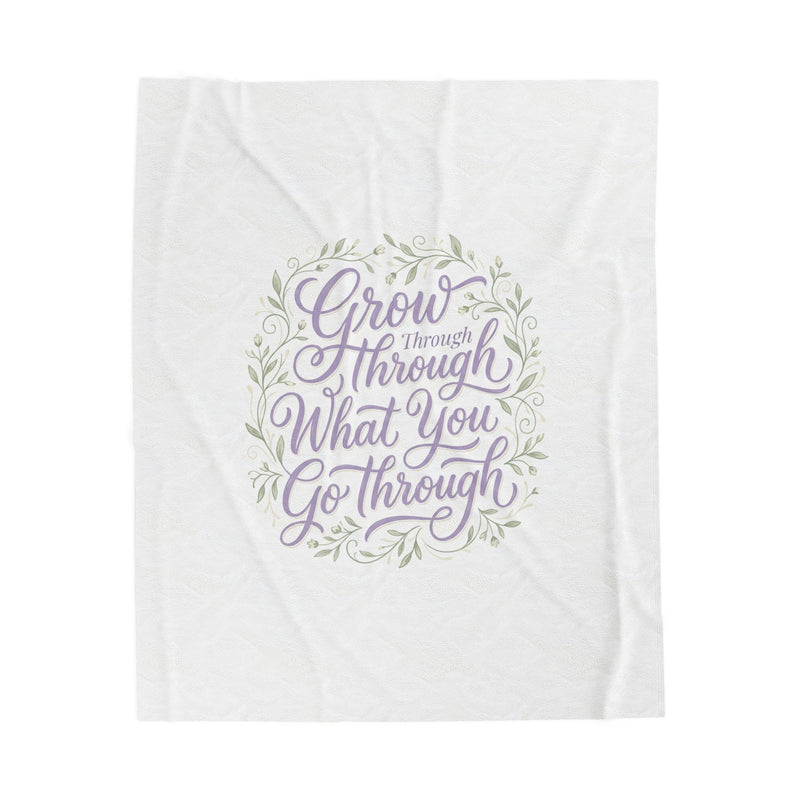 Grow Through What You Go Through Velveteen Blanket | pastel affirmation, mental health positivity